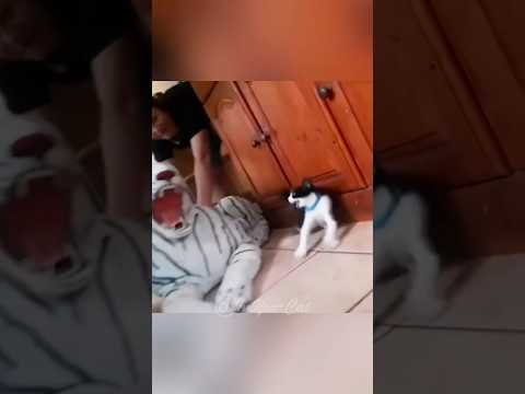 귀여운 새끼 고양이가 허스키를 세상에서 가장 좋은 침대로 생각하고 있어요!